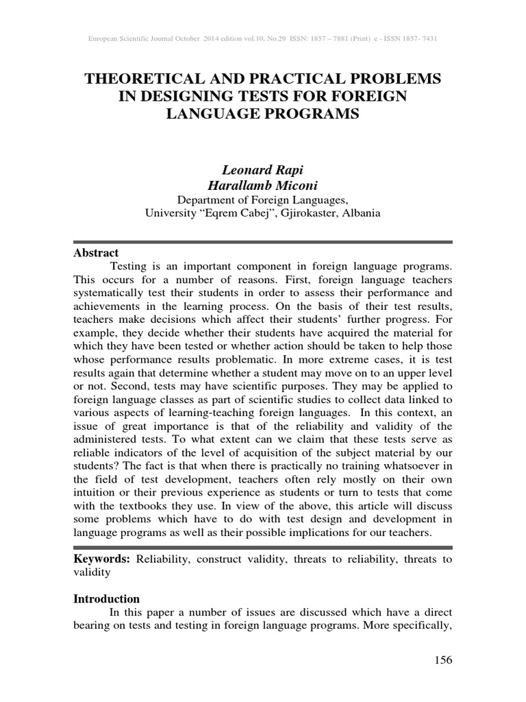 issues such as test reliability and test validity. Based on the literature on this