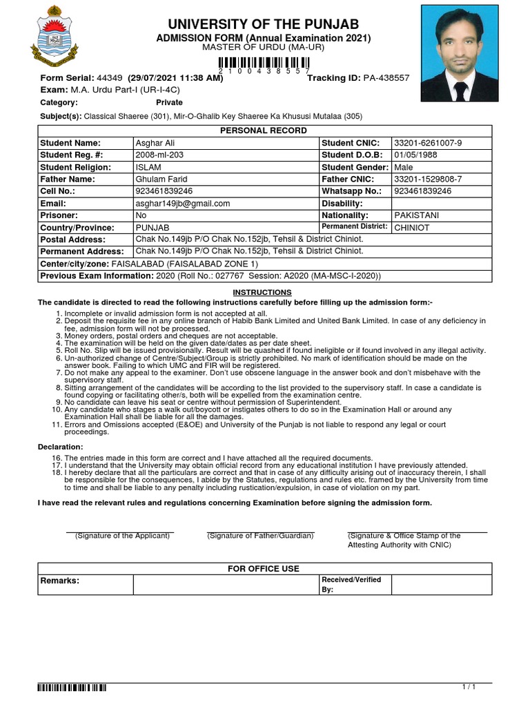 Form Serial: 44349 (29/07/2021 11:38 AM) Tracking ID: PA-438557