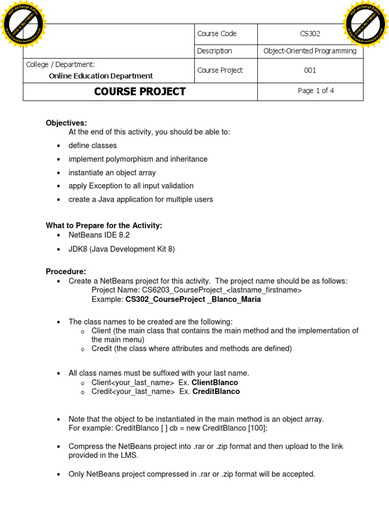 Only NetBeans project compressed in .rar or .zip format will be accepted.
