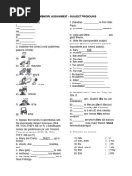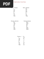 This document discusses personal pronouns in English and Spanish. It lists first, second and third person singular and plural pronouns in both languages, including subject and object forms. The pronouns are presented without context or explanation.