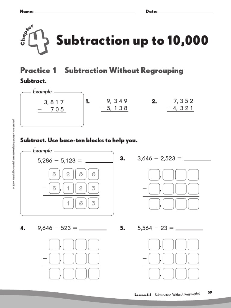 Subtraction Up To 10,000: Practice 1 Subtraction Without Regrouping