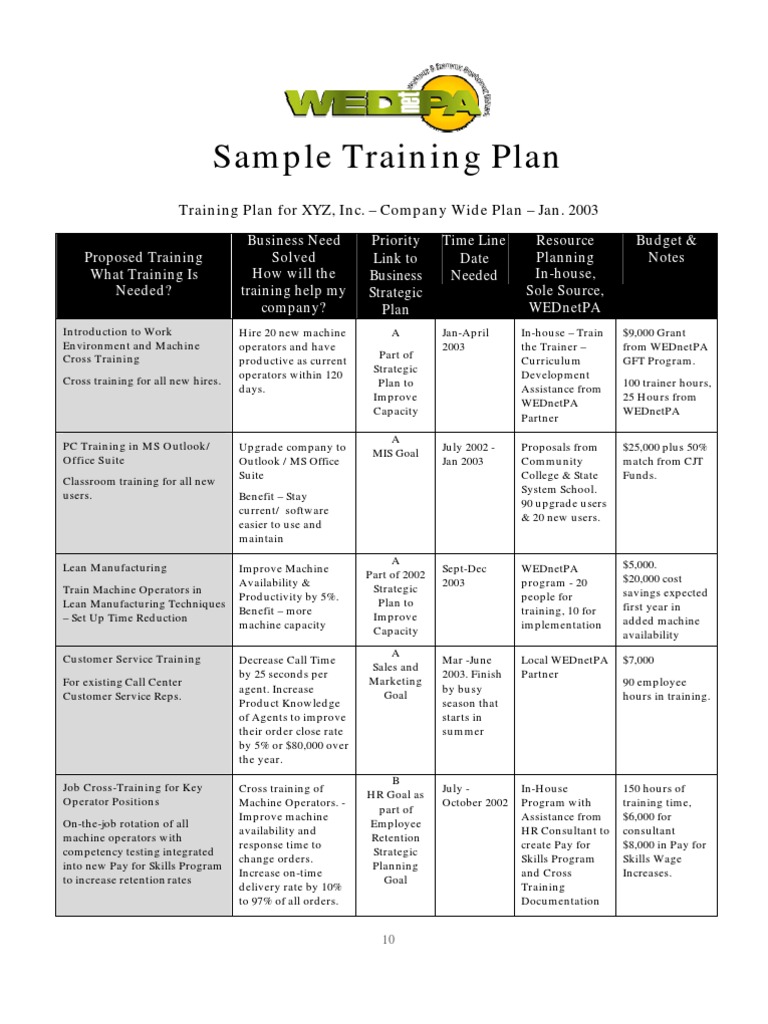 Sample Training Plan