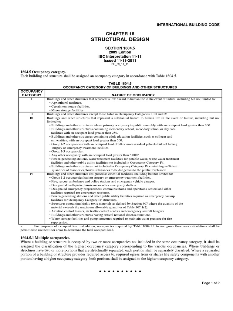 1604.5 Occupancy category.