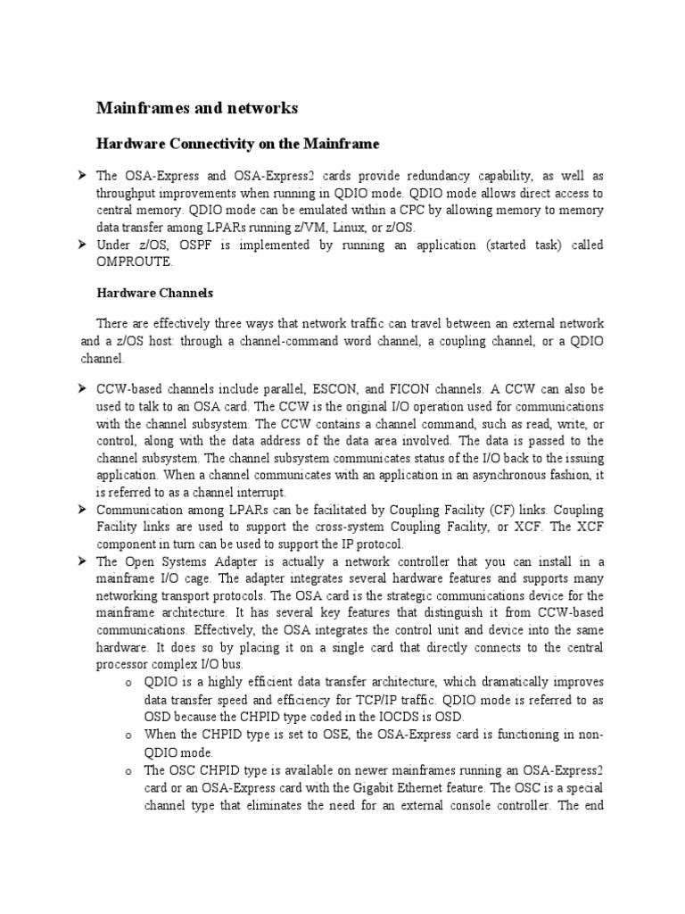 o The OSC CHPID type is available on newer mainframes running an OSA-Express2