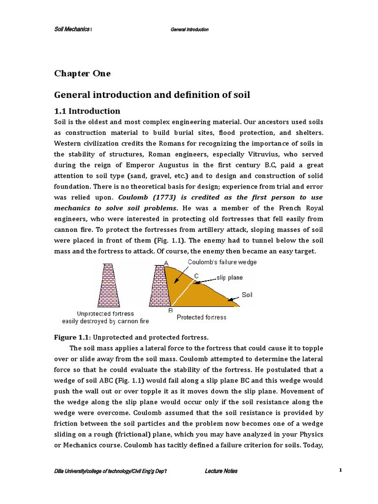 or Mechanics course. Coulomb has tacitly defined a failure criterion for soils. Today,