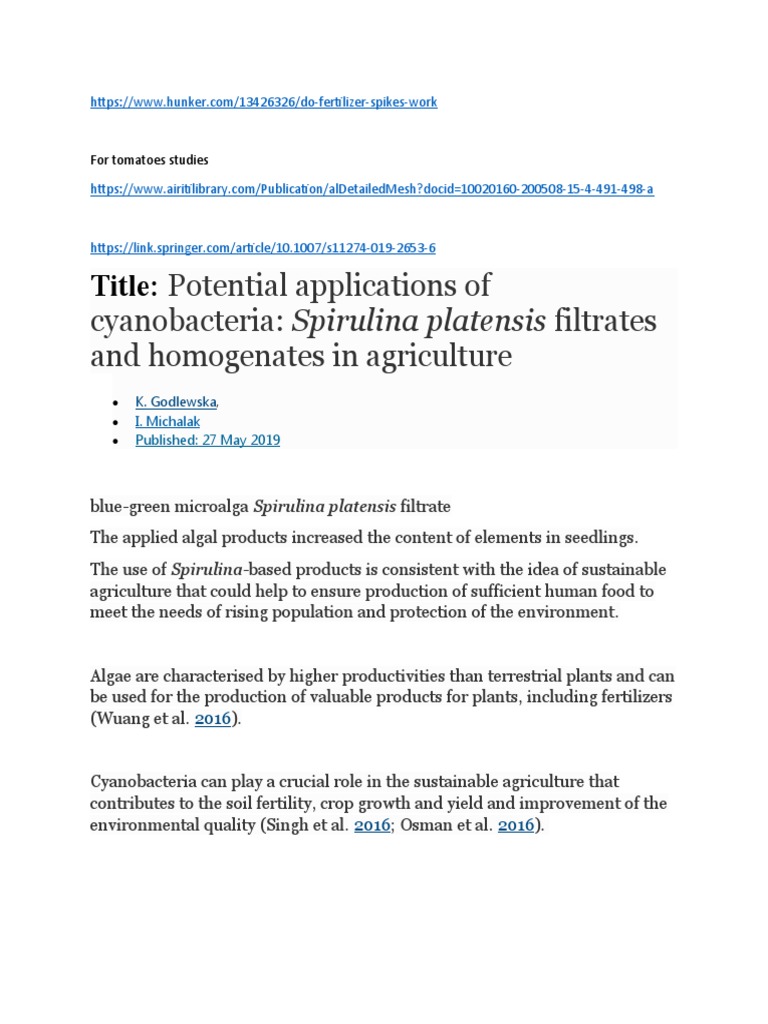 cyanobacteria: Spirulina platensis filtrates
