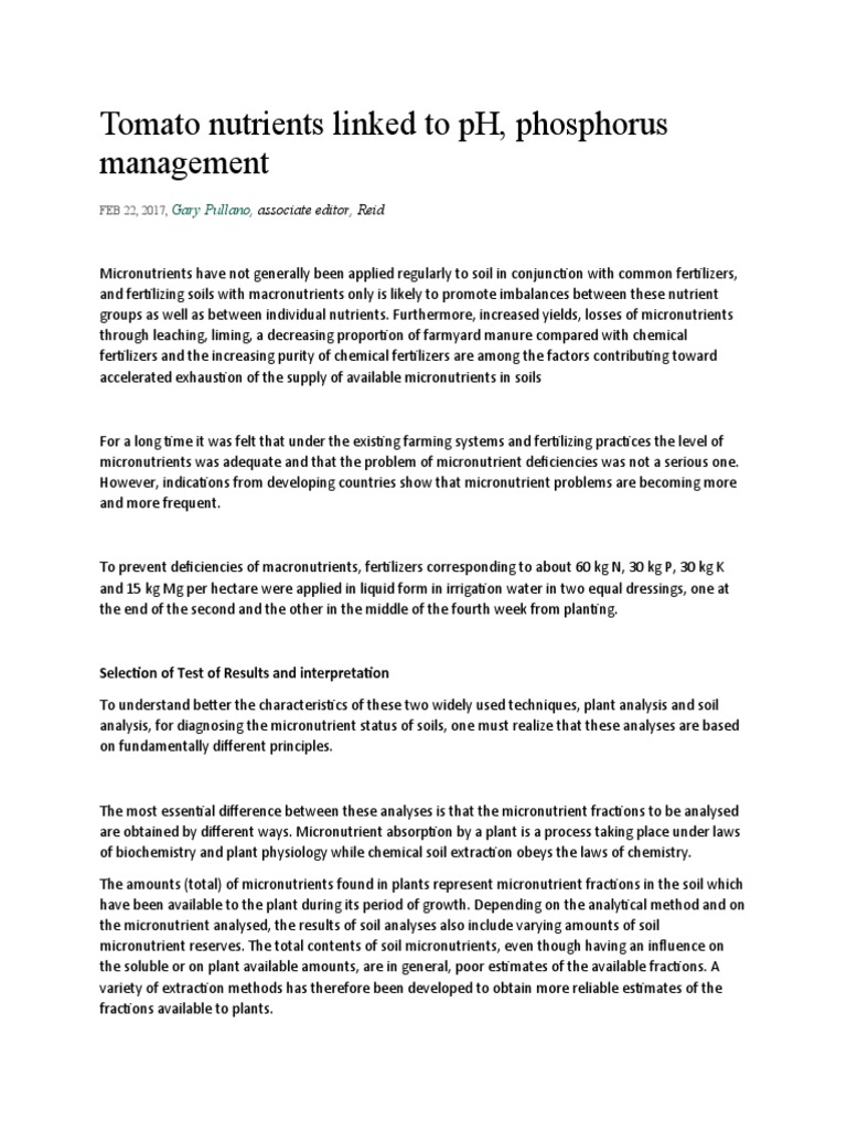 Tomato nutrients linked to pH, phosphorus