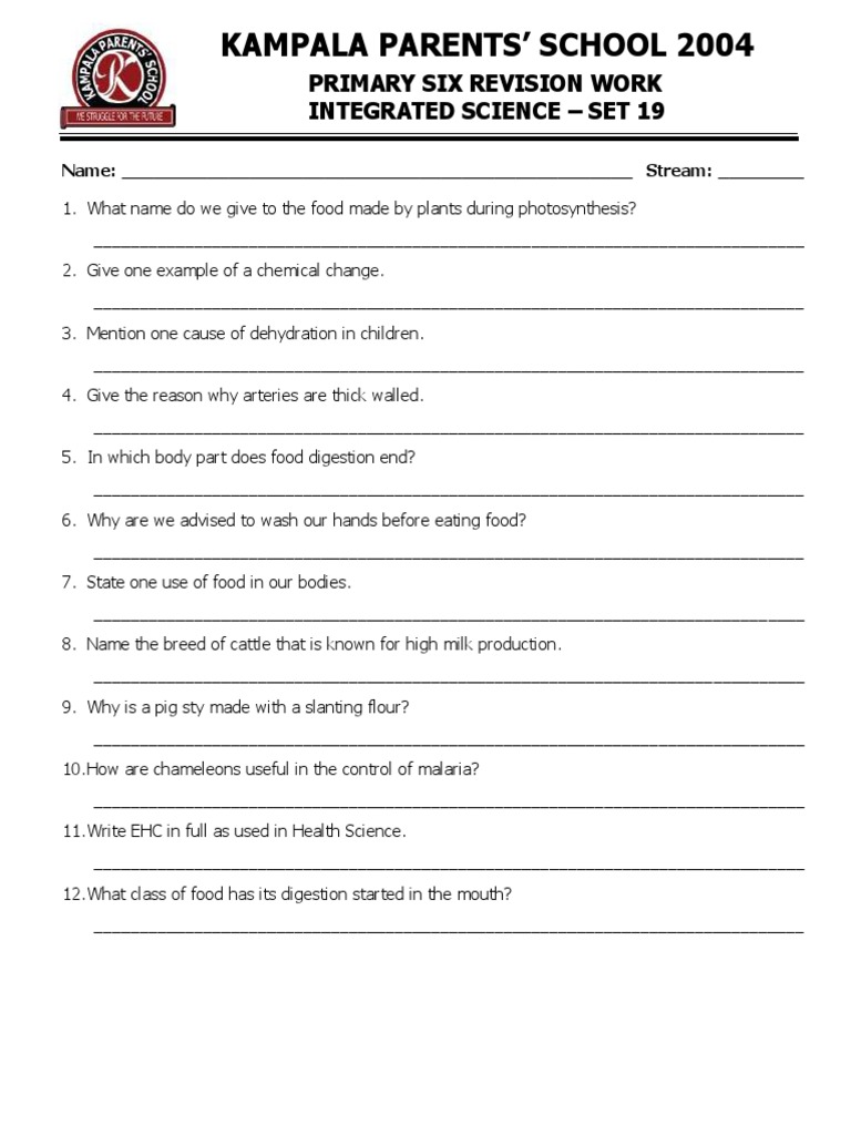 PRIMARY SIX REVISION WORK