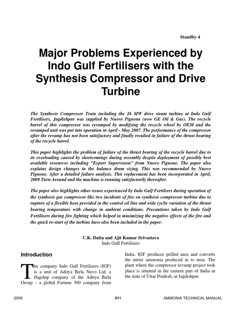 T he company Indo Gulf Fertilisers (IGF) plant where the compressor revamp project took