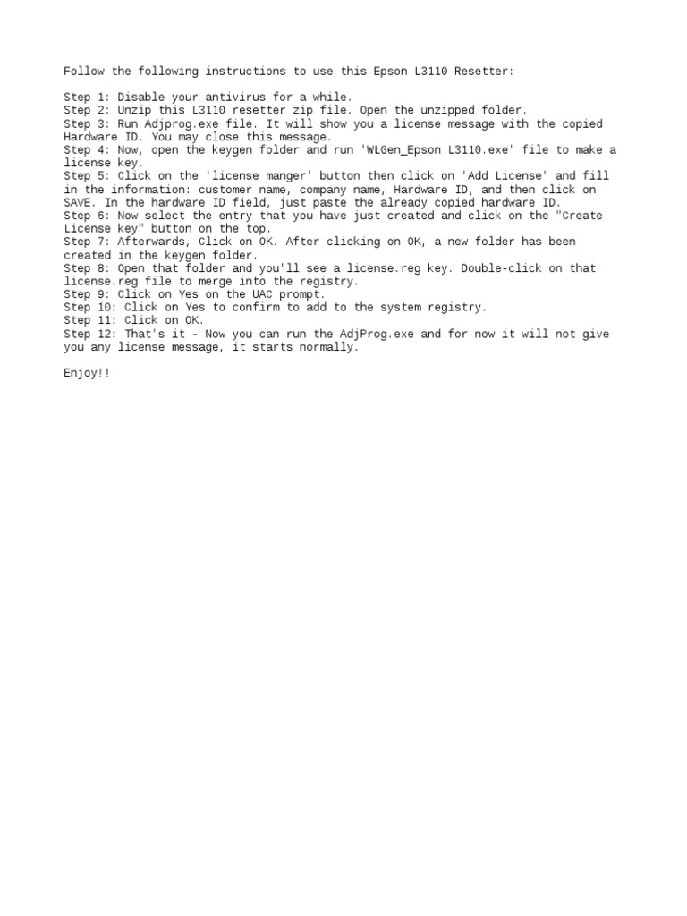 Step 4: Now, open the keygen folder and run 'WLGen_Epson L3110.exe' file to make a