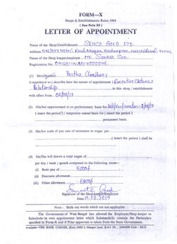 appointment letter which substantially contain the particulars specified in form X and it prior