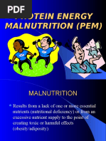 • Protein Energy Malnutrition (PEM) is the deficiency of macronutrients or