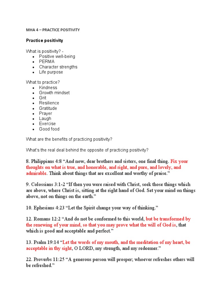 MHA 4 – PRACTICE POSITIVITY
