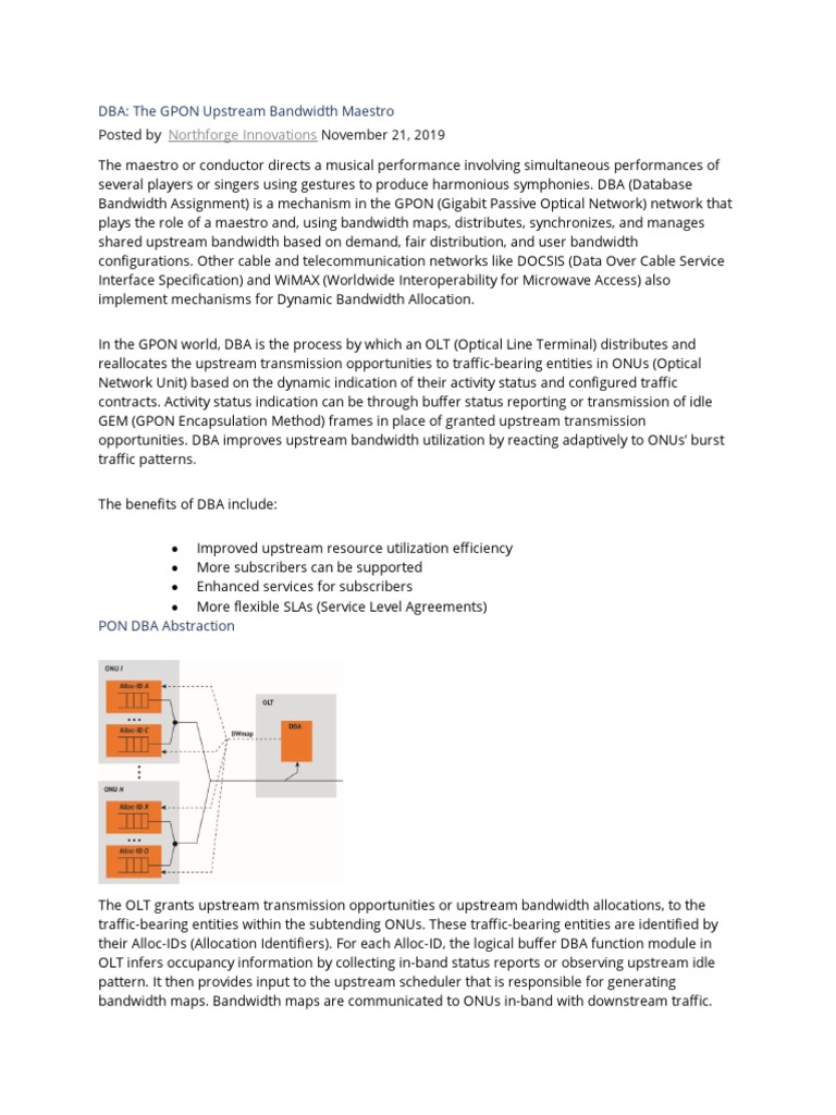 In the GPON world, DBA is the process by which an OLT (Optical Line Terminal) distributes and