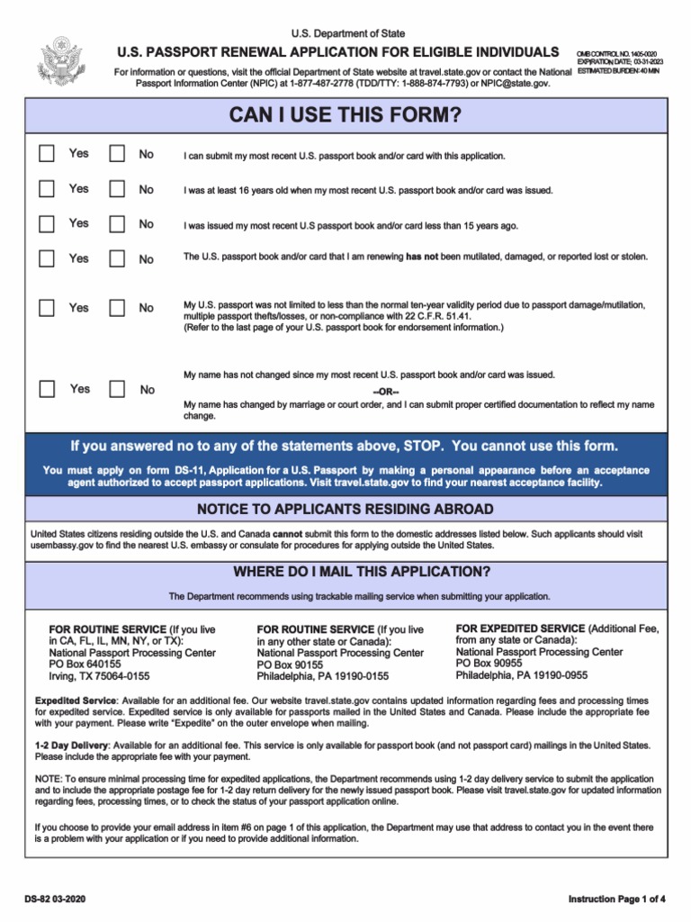 U.S. PASSPORT RENEWAL APPLICATION FOR ELIGIBLE INDIVIDUALS avaCONTROLN0.14lWY2Q