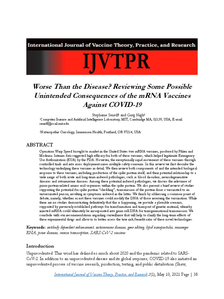 Worse Than The Disease? Reviewing Some Possible Unintended Consequences of The mRNA Vaccines Against COVID-19