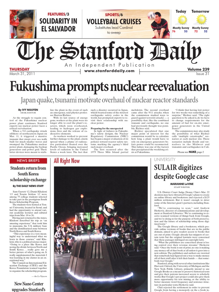 The Stanford Daily: Fukushima Prompts Nuclear Reevalua