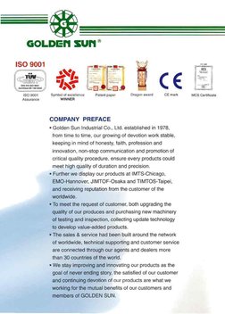 * Golden Sun Industrial Co., Ltd. established in 1978,