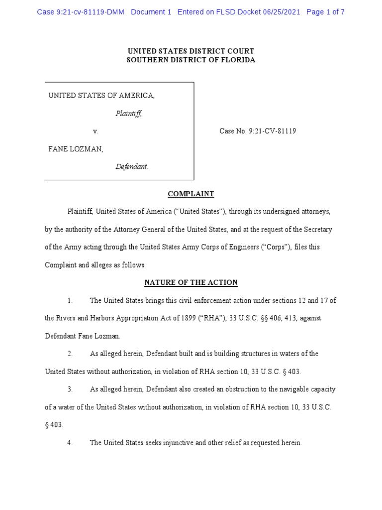 Defendant that the unauthorized structures that Defendant built in Lake Worth Lagoon are