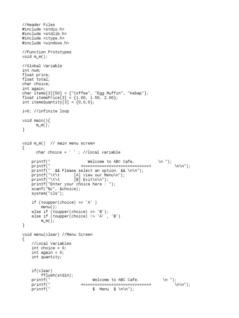 char items[3][50] = {"Coffee", "Egg Muffin", "Kebap"};