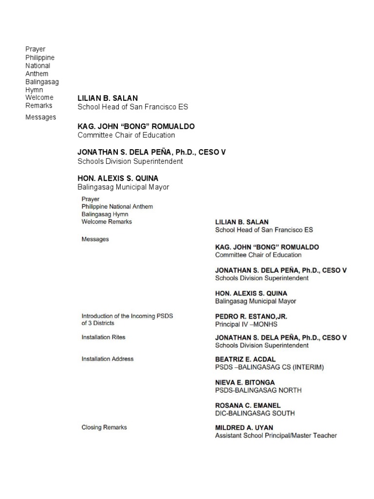 Installation JONATHAN S. DELA PEÑA, Ph.D., CESO V