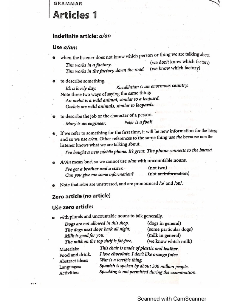 ‘A/An mean ‘one, so we cannot use a/an with uncountable nouns.