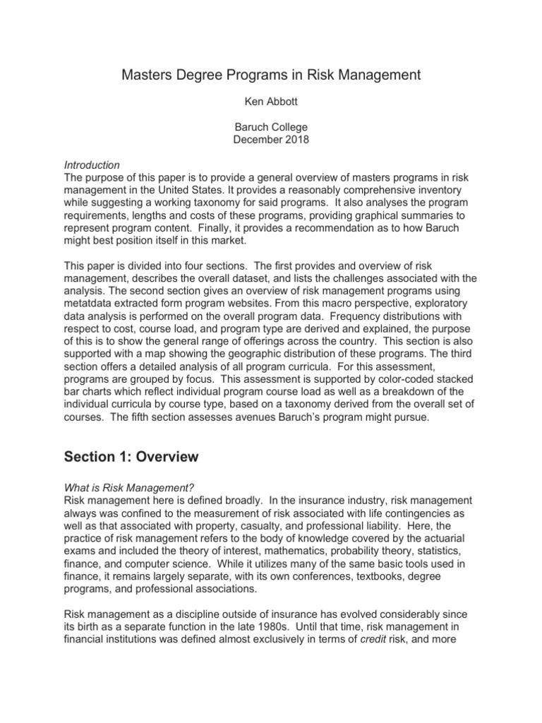The purpose of this paper is to provide a general overview of masters programs in risk