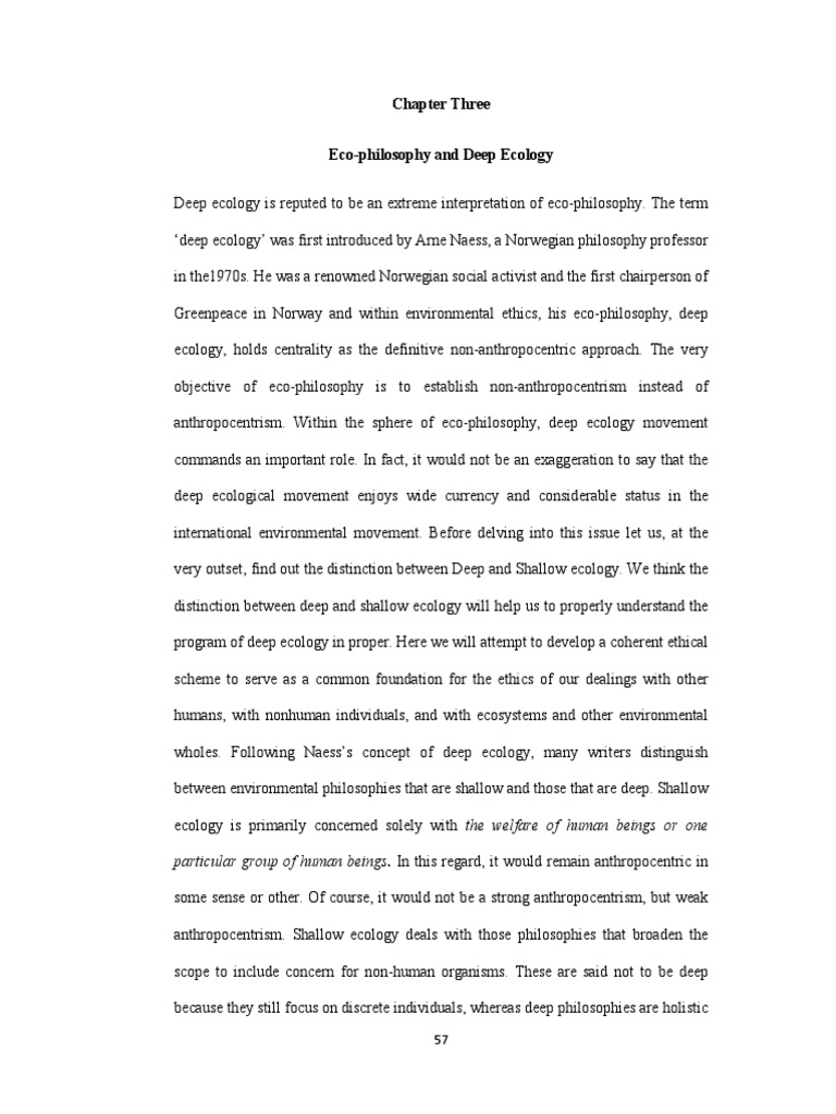 principle of deep ecology. Deep ecology thus would remain as deep within