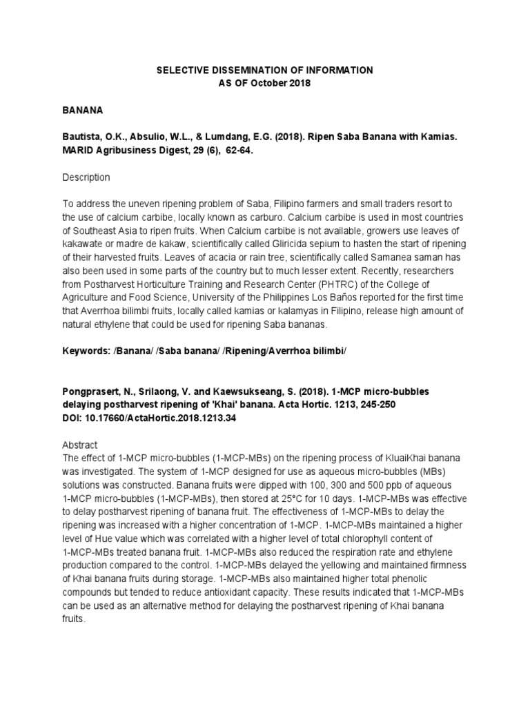 from Postharvest Horticulture Training and Research Center (PHTRC) of the College of