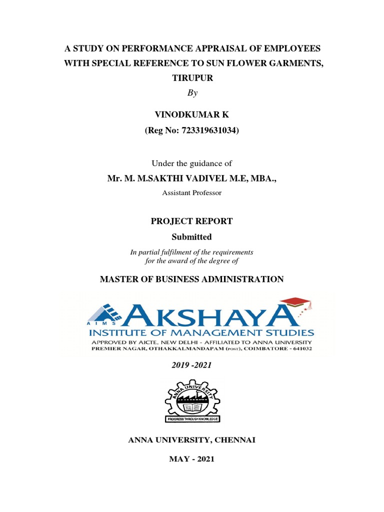 original work done by A STUDY ON PERFORMANCE APPRAISAL OF EMPLOYEES