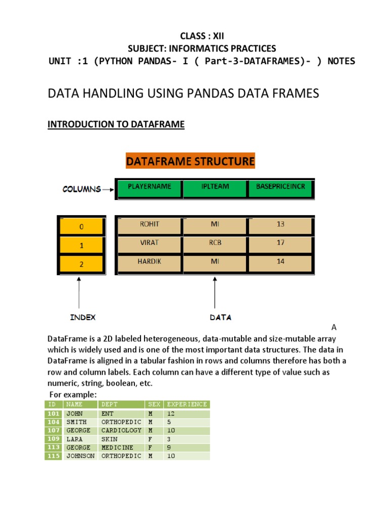 UNIT :1 (PYTHON PANDAS- I ( Part-3-DATAFRAMES)- ) NOTES