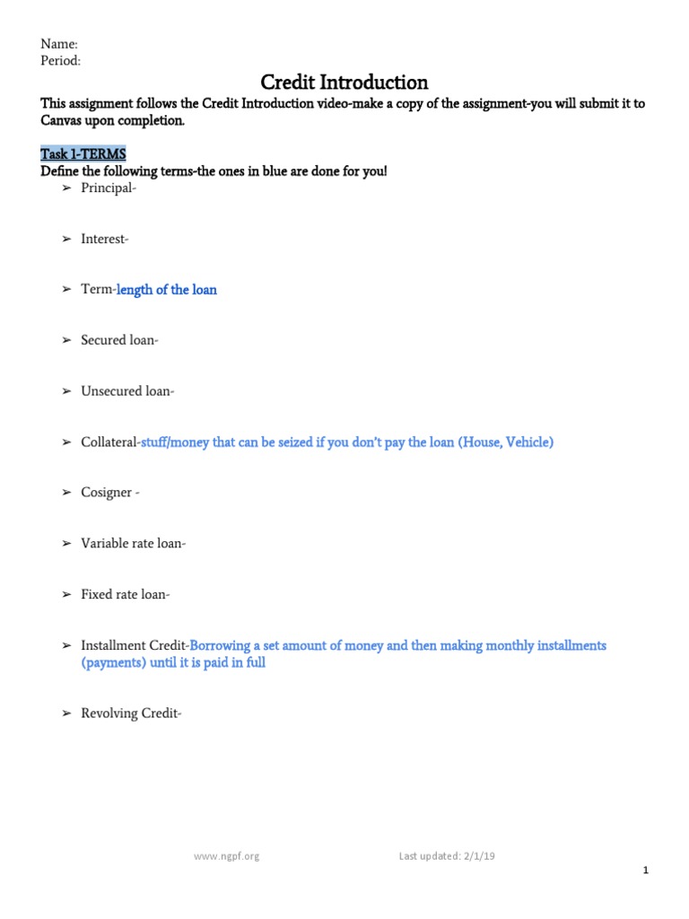 This assignment follows the Credit Introduction video-make a copy of the assignment-you will submit it to