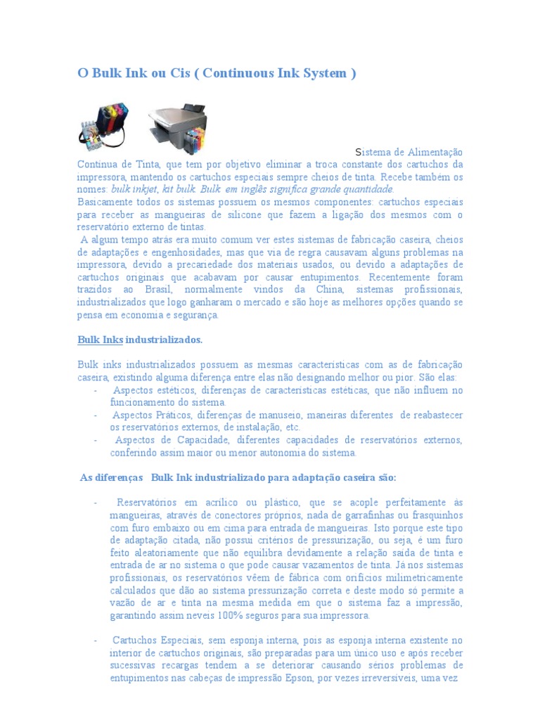 O Bulk Ink ou Cis ( Continuous Ink System )