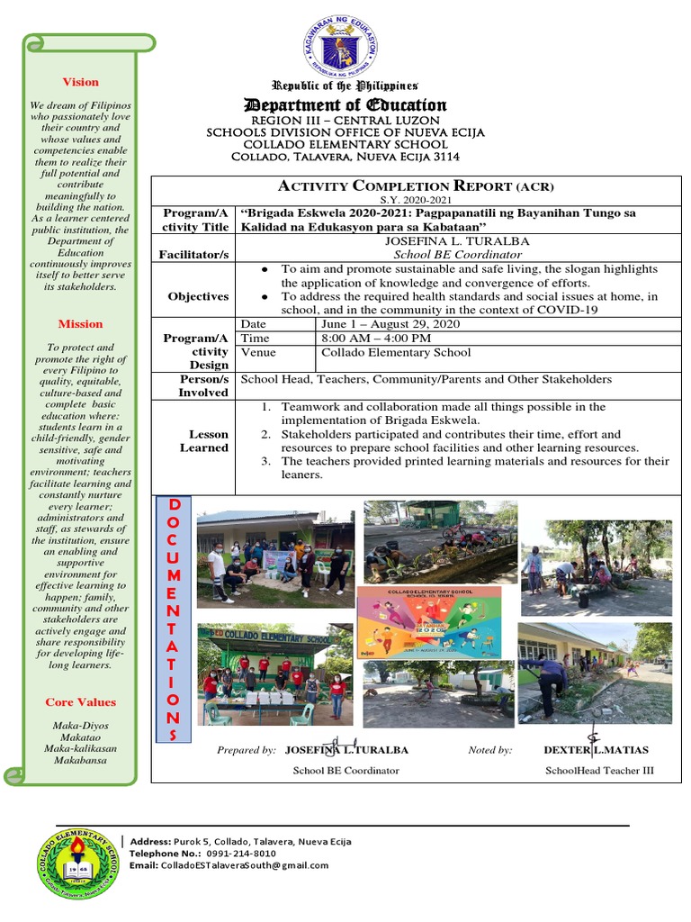 implementation of Brigada Eskwela.