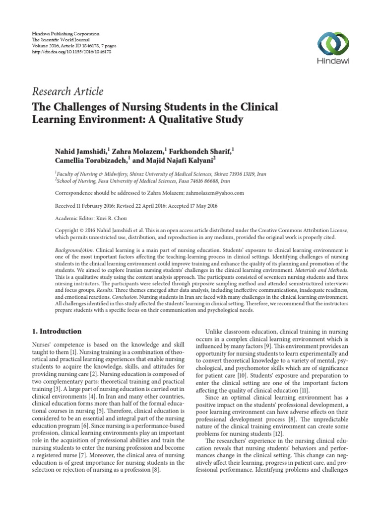 Research Article: The Challenges of Nursing Students in The Clinical Learning Environment: A Qualitative Study