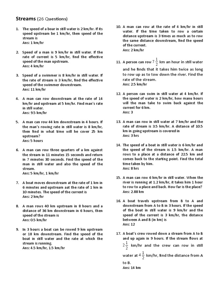 or 18 km downstream. Find the speed of the 17. A boat’s crew rowed down a stream from A to B