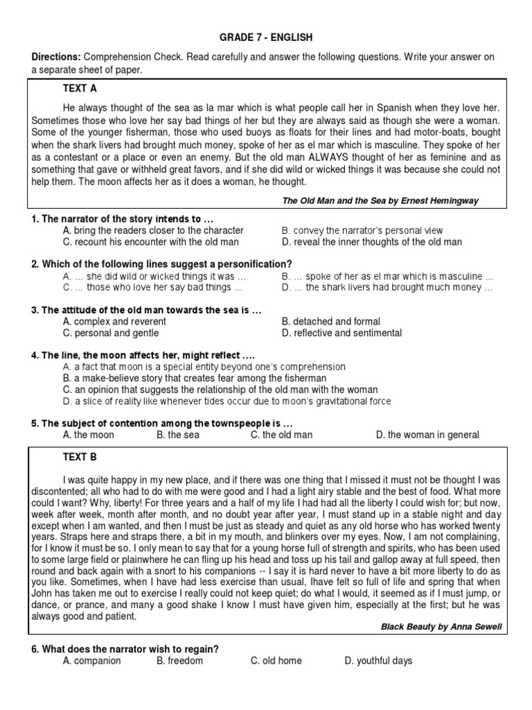 Directions: Comprehension Check. Read carefully and answer the following questions. Write your answer on