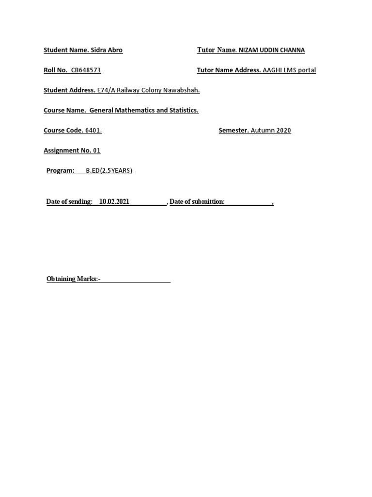 Roll No. CB648573 Tutor Name Address. AAGHI LMS portal