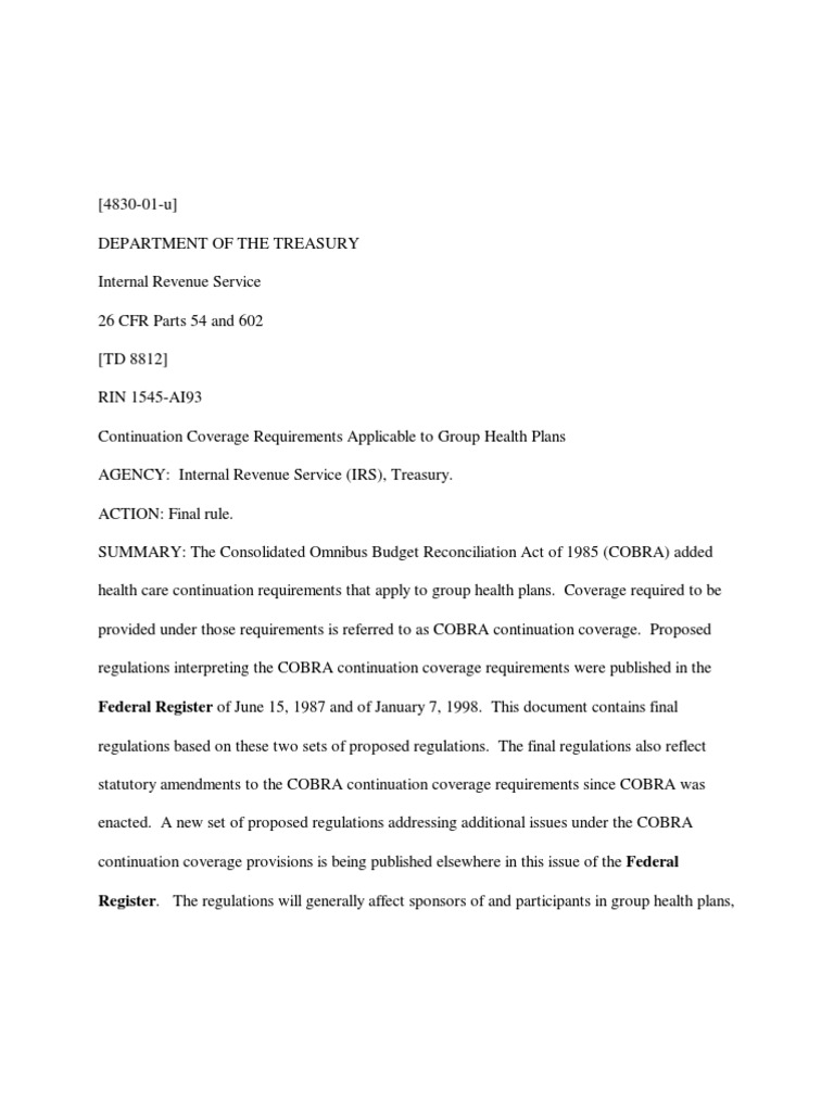 SUMMARY: The Consolidated Omnibus Budget Reconciliation Act of 1985 (COBRA) added