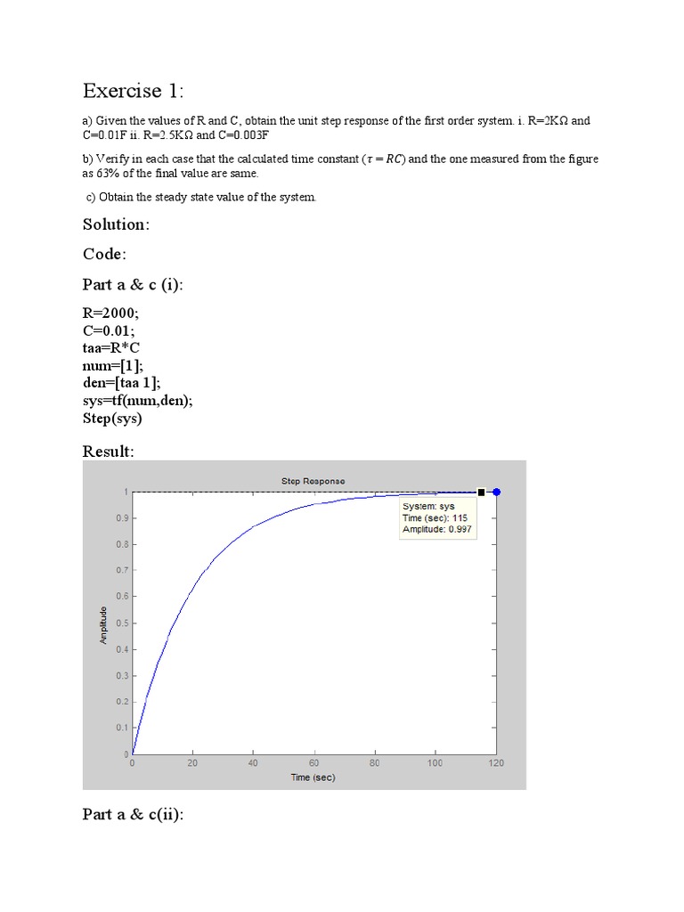 a) Given the values of R and C, obtain the unit step response of the first order system. i. R=2KΩ and