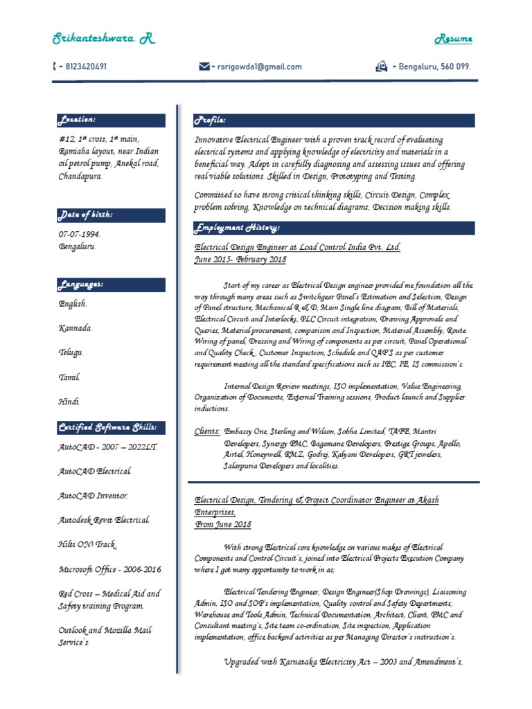 Languages: Start of my career as Electrical Design engineer provided me foundation all the
