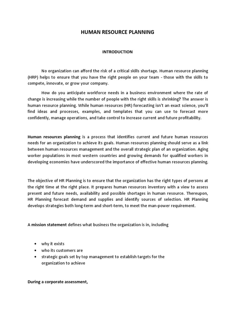 No organization can afford the risk of a critical skills shortage. Human resource planning
