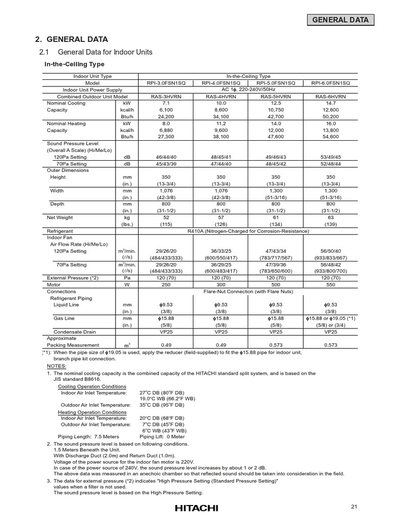 (In case of 6HP, the data is based on the In-the-Ceiling Type indoor unit single connection. <RPI-6.0FSN1SQ>)