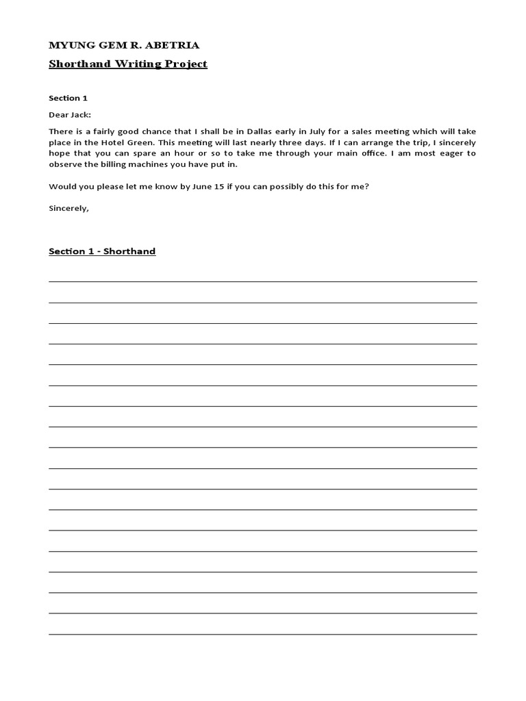 Shorthand Writing Project