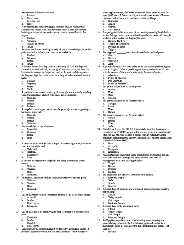 a. Trabeated c. Persepolis