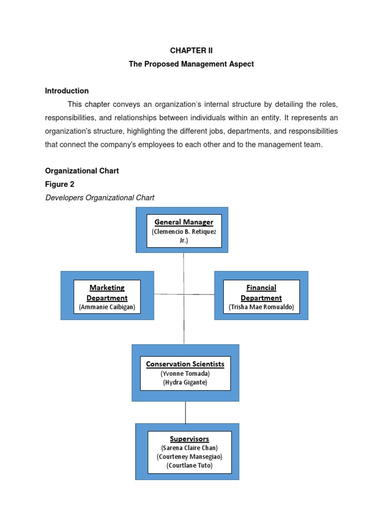 This chapter conveys an organization’s internal structure by detailing the roles,