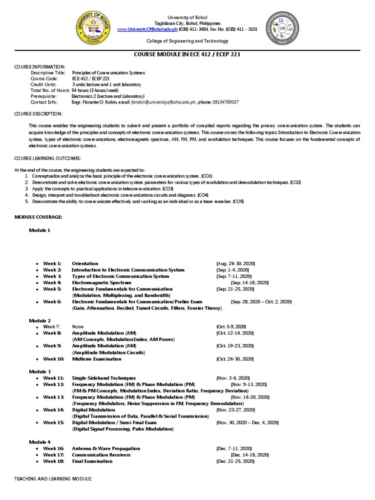 Principles of Communication Systems Course Module