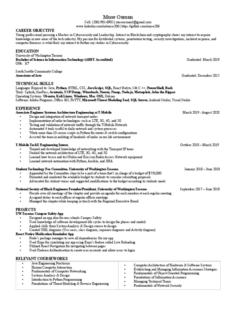 Associate Engineer Systems Architecture Engineering at T-Mobile March 2019 - August 2020