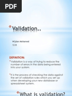 Validation is an automatic check to ensure that the data entered is sensible and feasible.