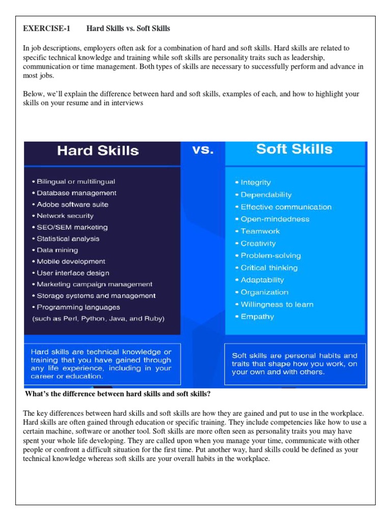 Hard Skills vs. Soft Skills: Exercise-1